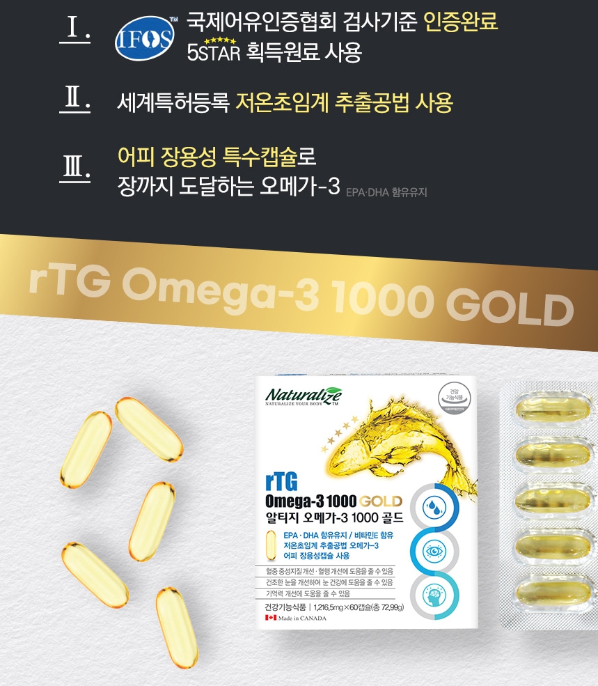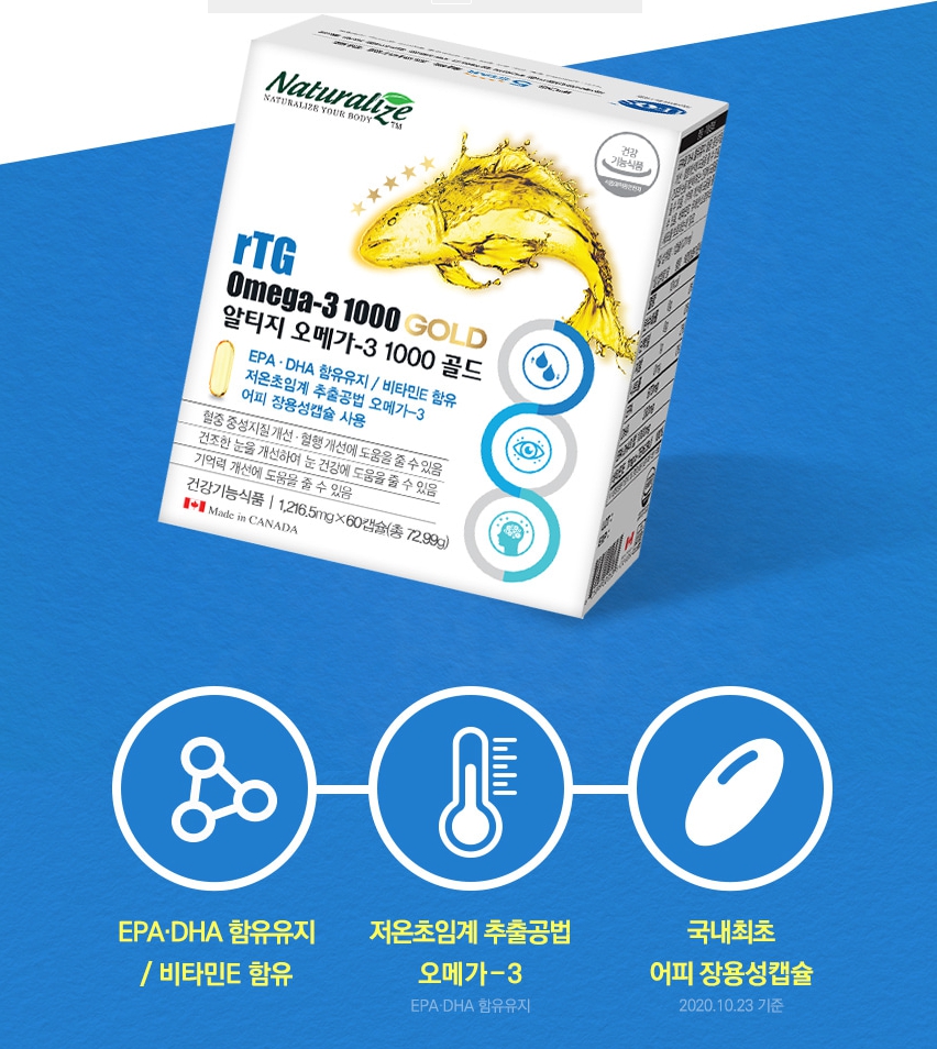 rtg 알티지 오메가3 1000 골드 1,216.5mg x 60캡슐 네추럴라이즈 : 에브리킹스몰