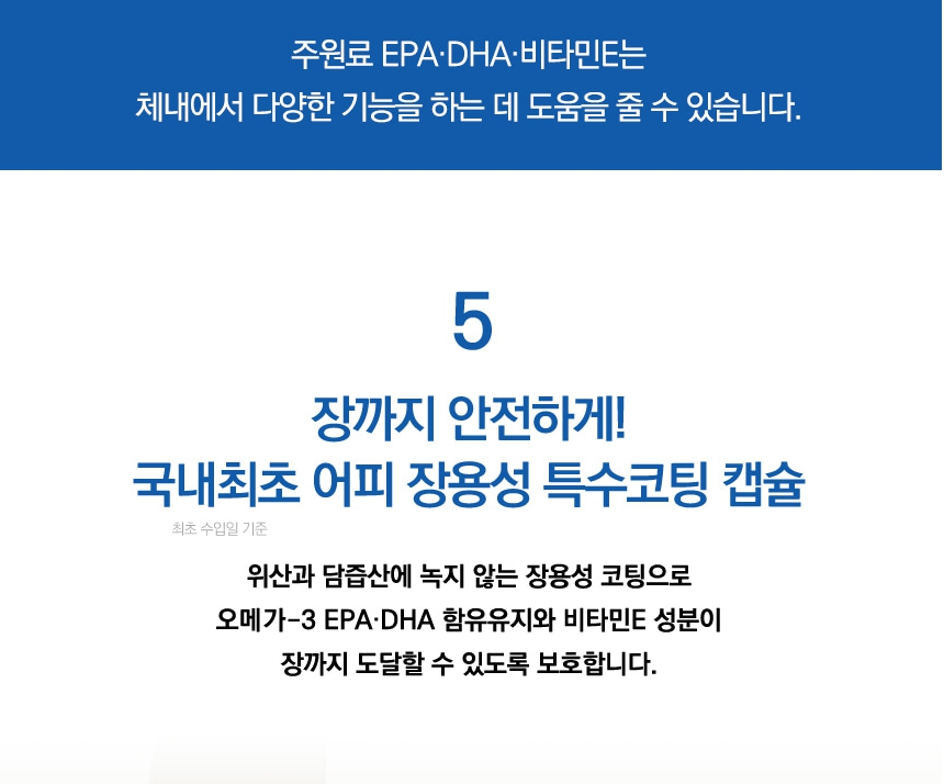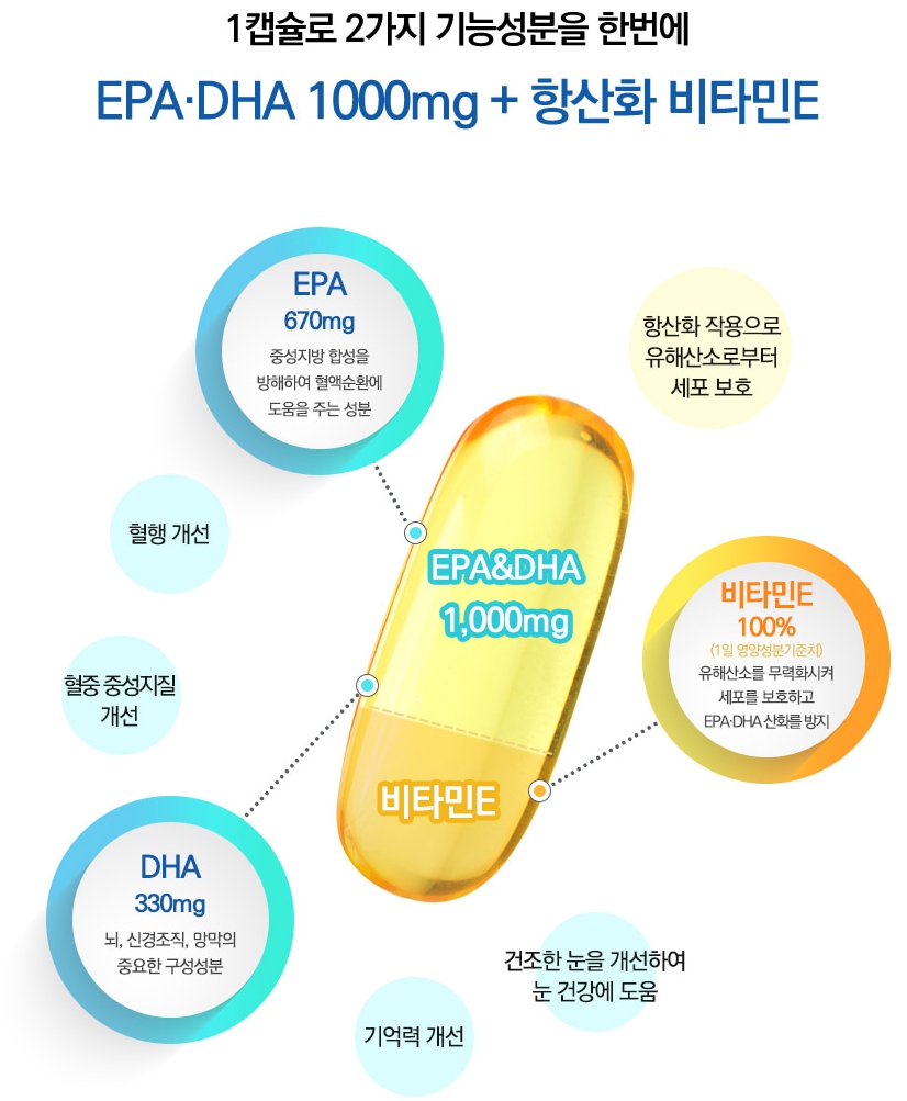 이 제품은 EPA 적정량은 물론, 뇌와 신경조직, 그리고 눈 건강에 확실한
