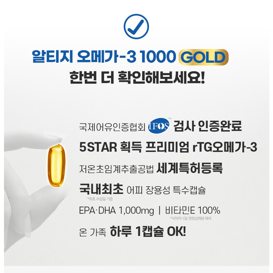 rtg 알티지 오메가3 1000 골드 1,216.5mg x 60캡슐 네추럴라이즈