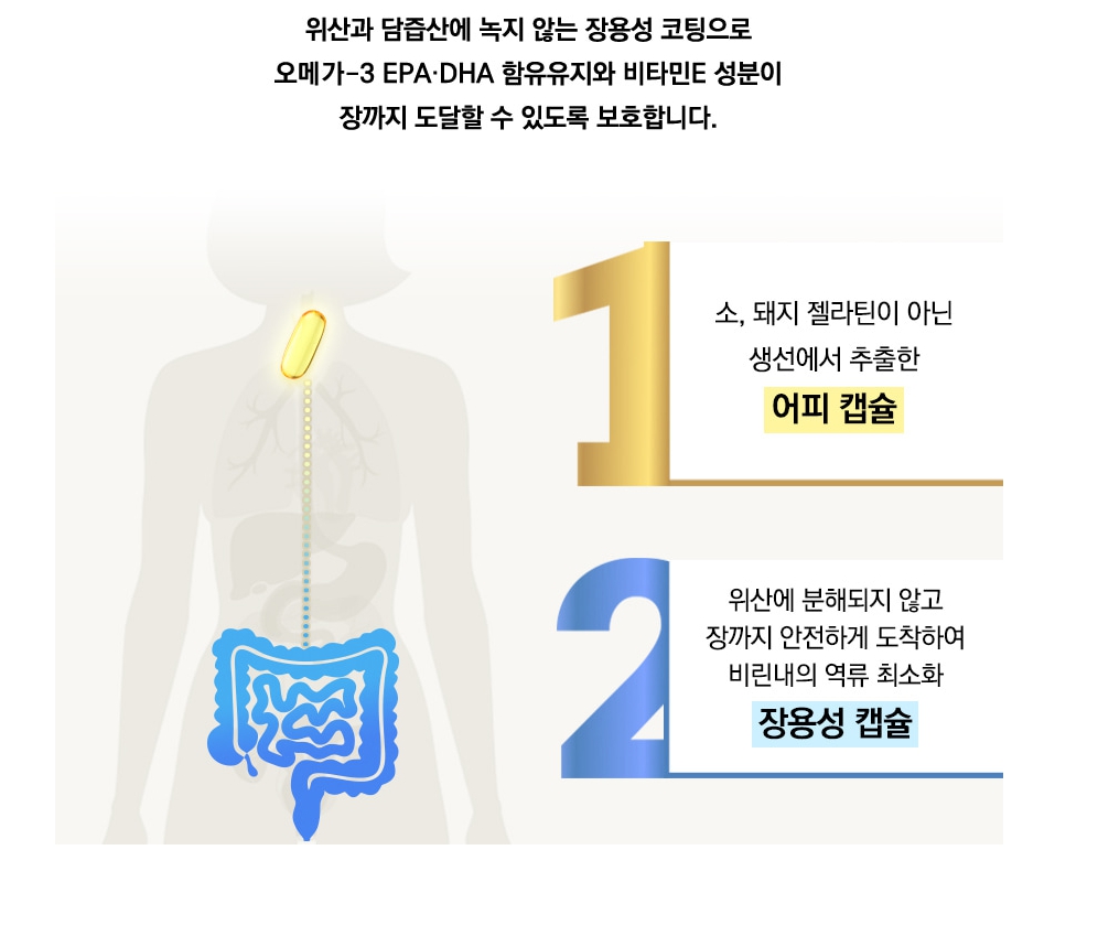거기다 EPA와 DHA가 잘 흡수 되도록 유해산소를 막아주고 우리 몸의 세포를