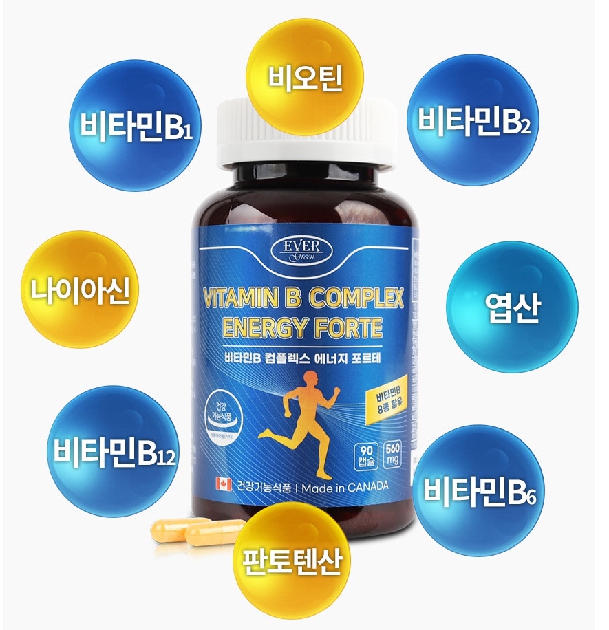 에버그린 비타민B 컴플렉스 에너지 포르테 560mg x 90캡슐 : 에브리킹스몰