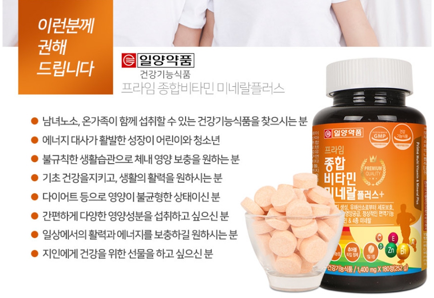 일양약품 프라임 종합 비타민 미네랄 플러스 1400mg x 180정 추천