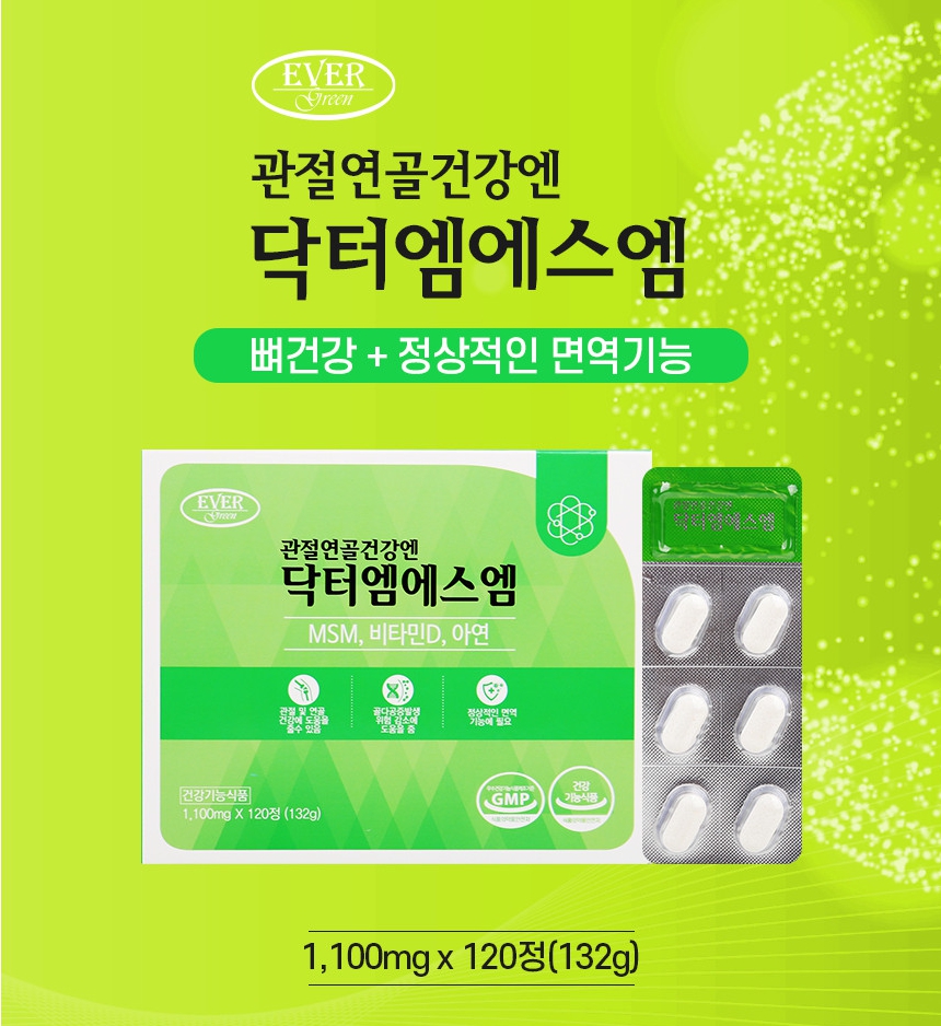 관절 연골 건강엔 닥터 엠에스엠 MSM 골다공증 예방 면역강화 - 에버그린