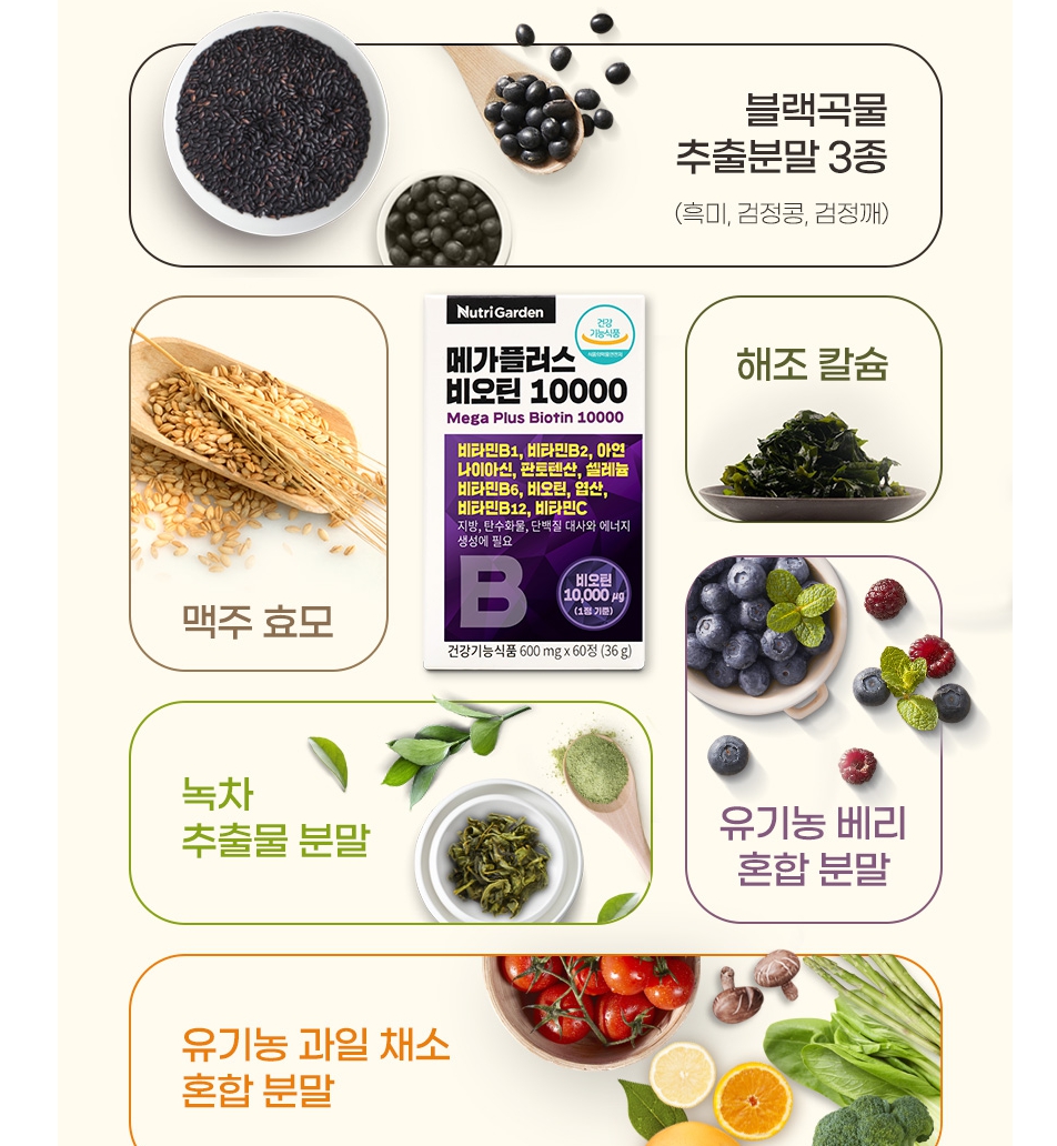 고함량 비타민 비오틴 아연 판토텐산 나이아신 함유 메가플러스 비오틴 10000 : 에브리킹스몰