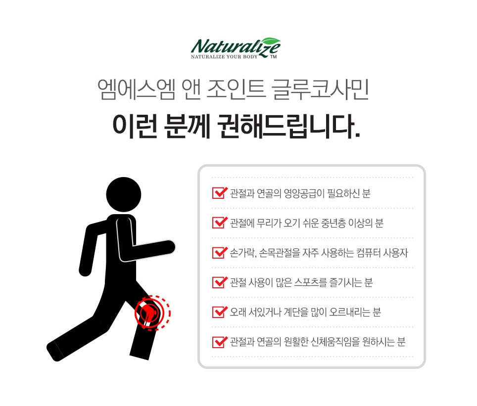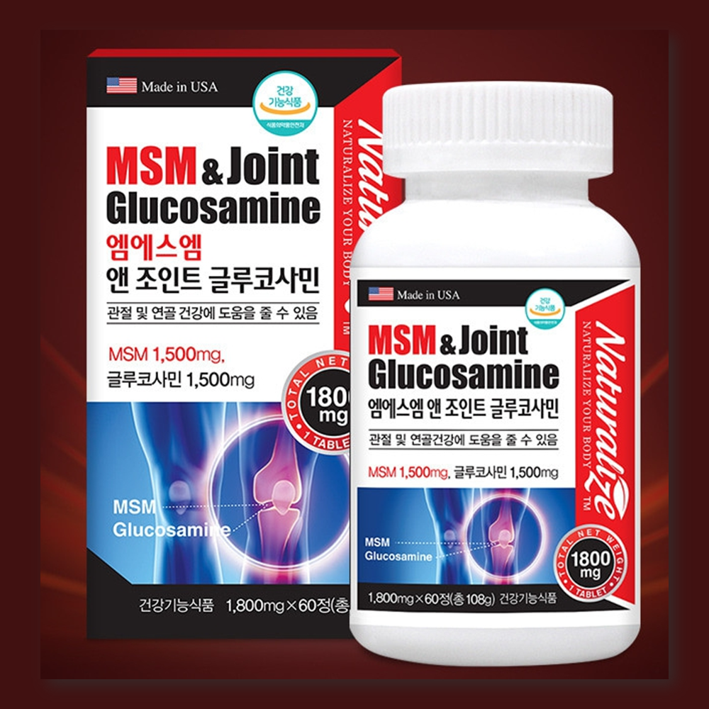 네추럴라이즈 엠에스엠 MSM 앤 조인트 글루코사민 1800mg x 60정 관절 연골 무릎 뼈 건강에 추천